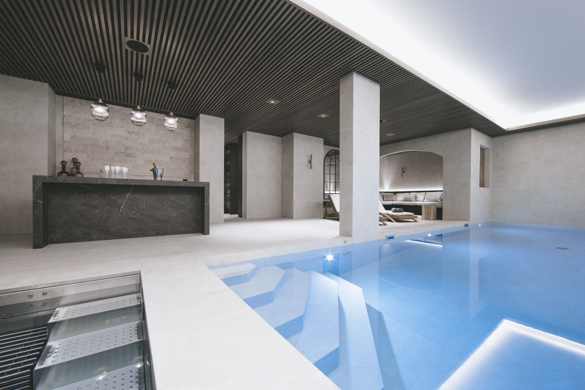 Le petit plus : un appartement privé, relié au lobby du chalet, vient parfaire cette propriété d’exception.